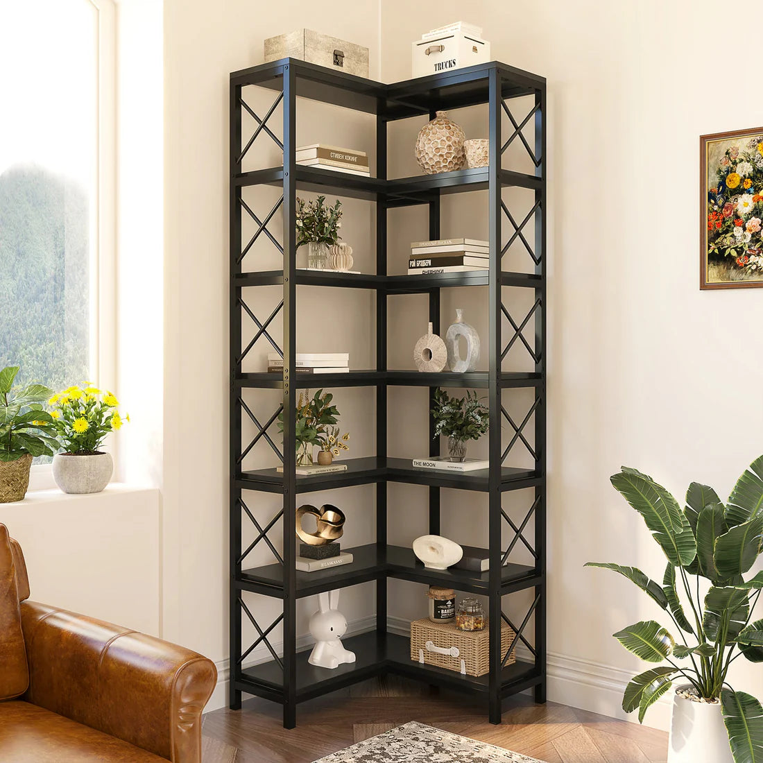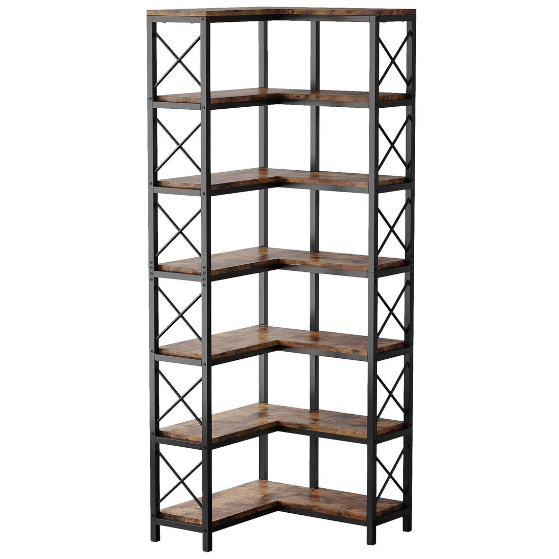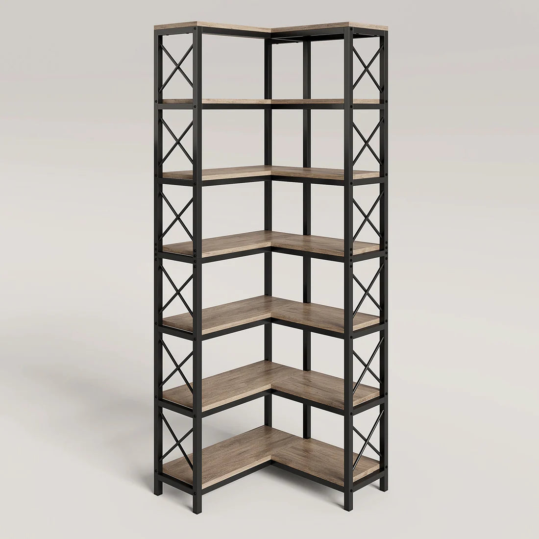 7-Tier Corner Bookshelf, Industrial Display & Storage Rack