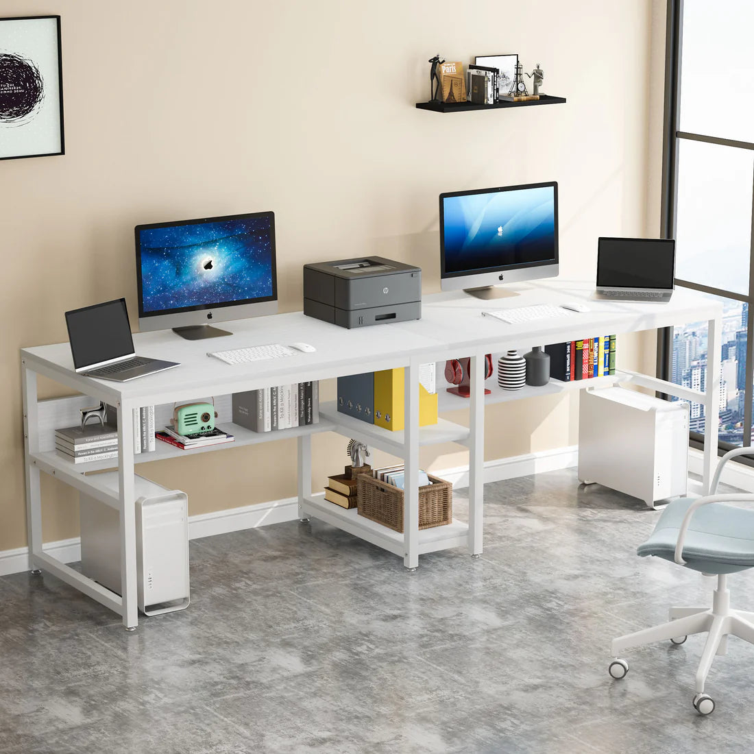 78.7” Double Computer Desk – Two Person Workstation with Storage Shelves