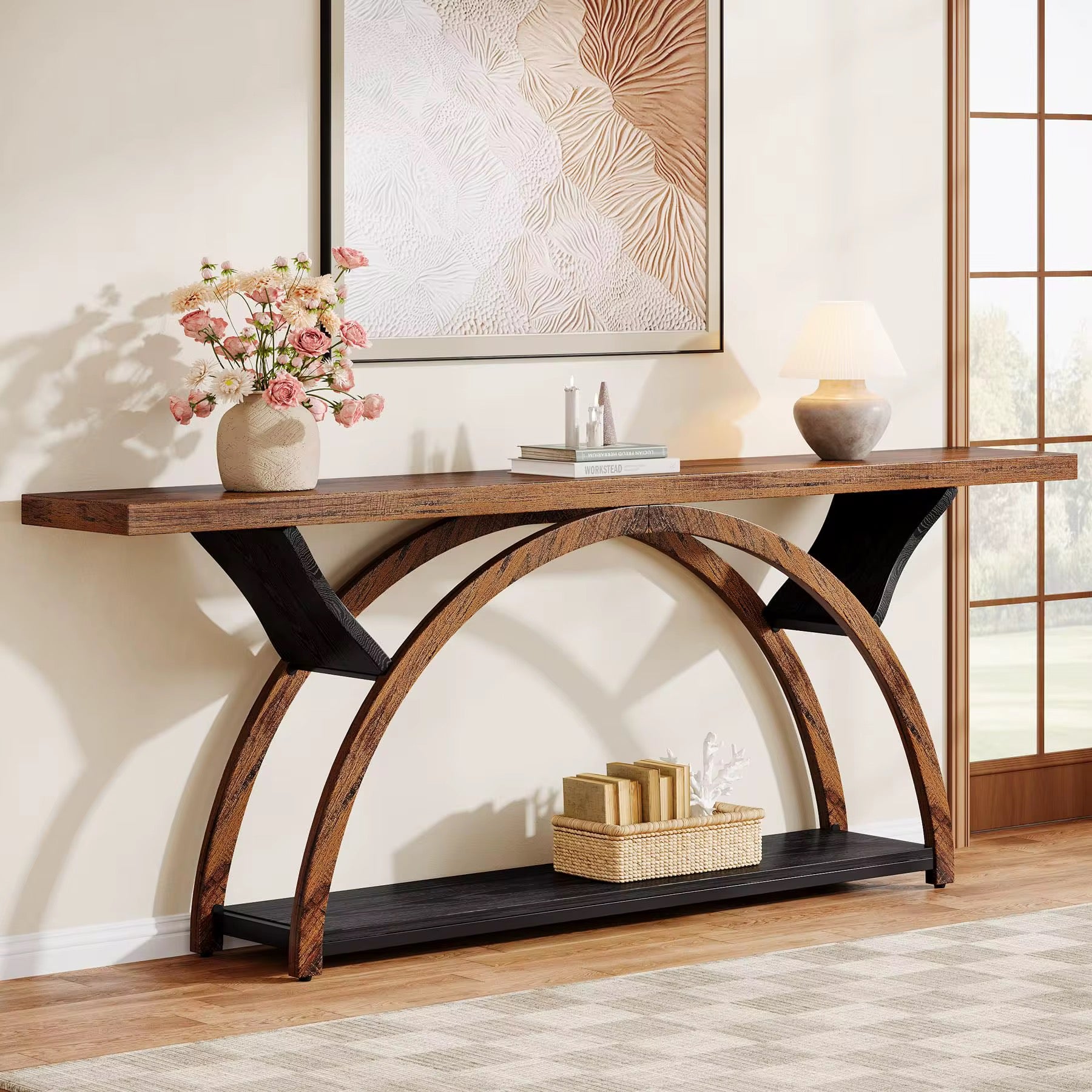 Table console derrière-canapé – 2 niveaux d’étagères de rangement pour salon