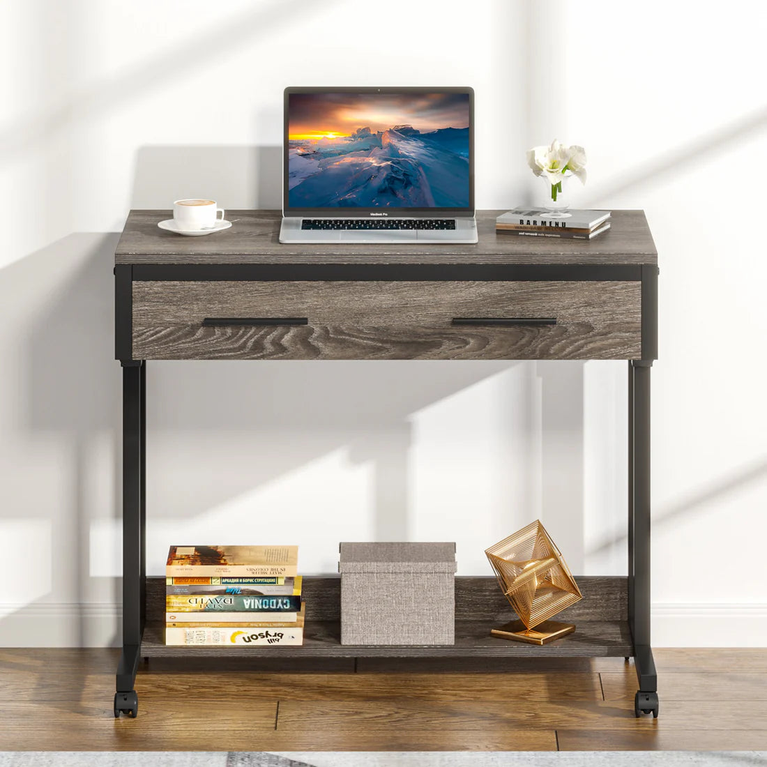 Height Adjustable Desk – Portable Rolling Side Table with Storage Drawers