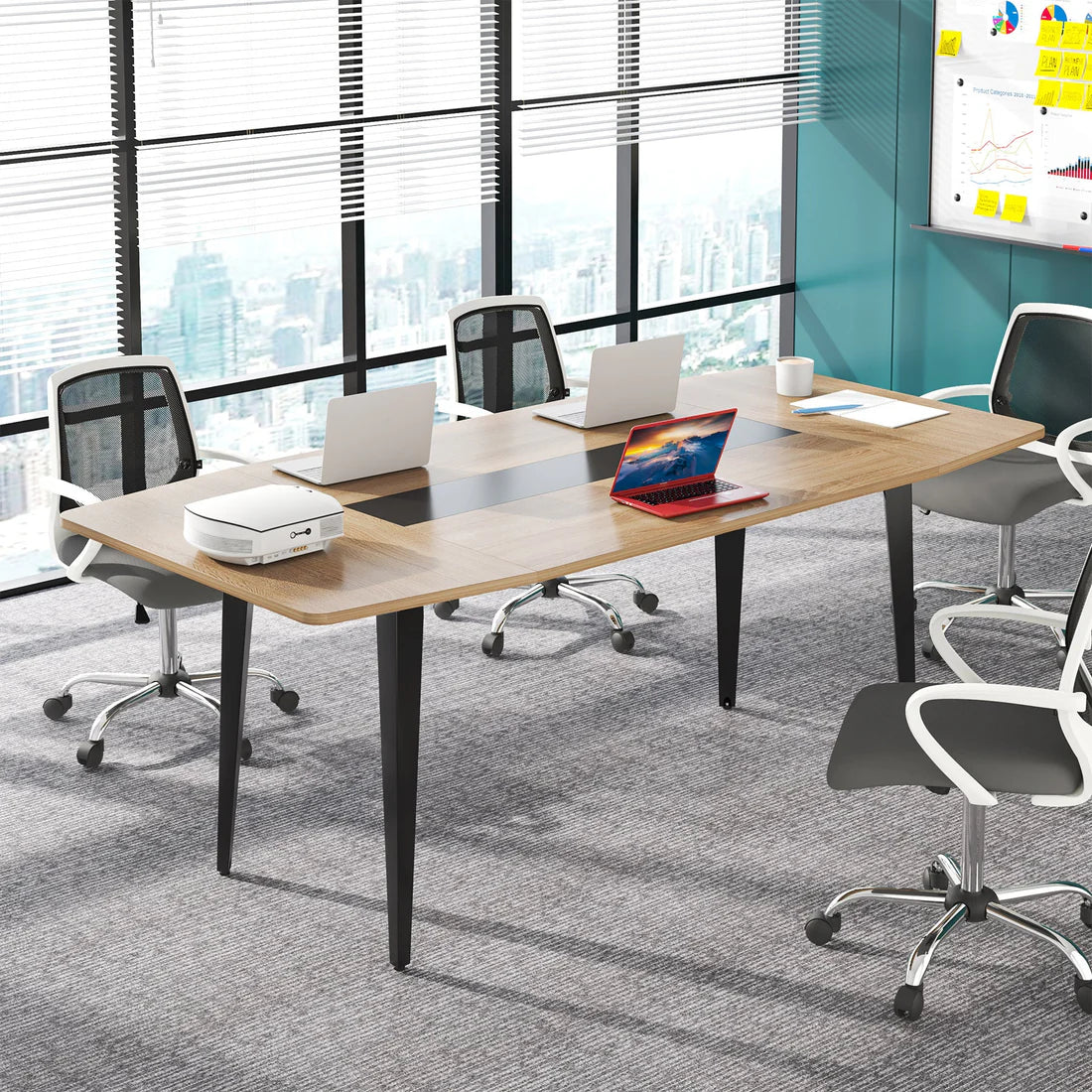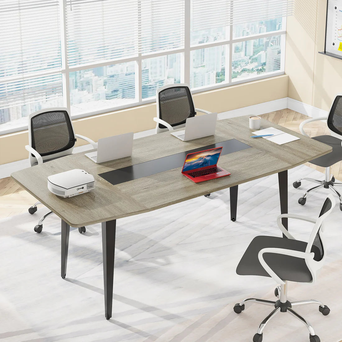 Crafted with a natural wood-grain finish and a contemporary silhouette, this conference room table blends perfectly into any modern office, from executive boardrooms to creative team spaces. The 8FT version ships in two packages for easy handling, while the 6FT version arrives in a single package.