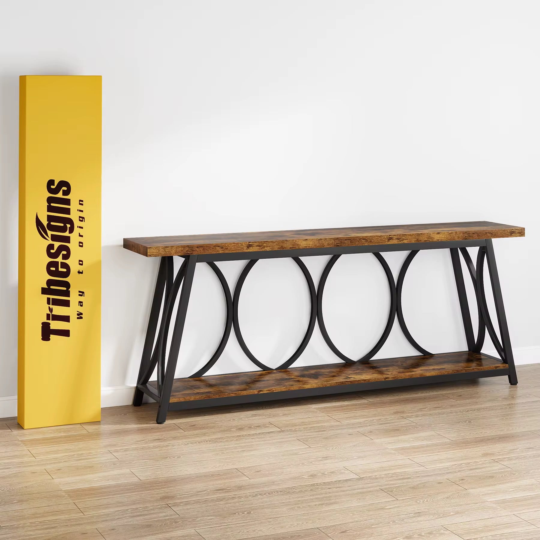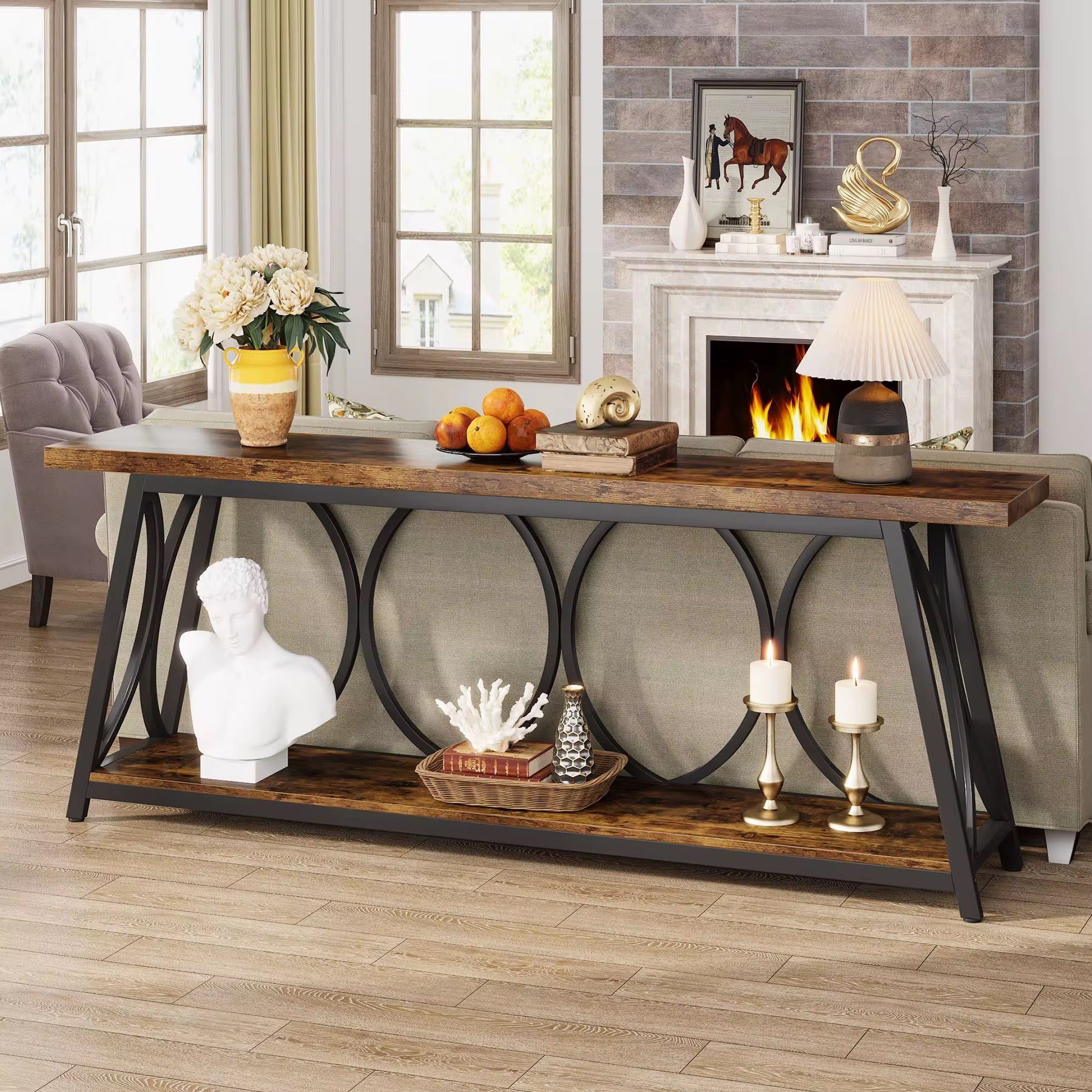 Table console d’entrée à 2 niveaux , table de canapé derrière le canapé avec étagères de rangement
