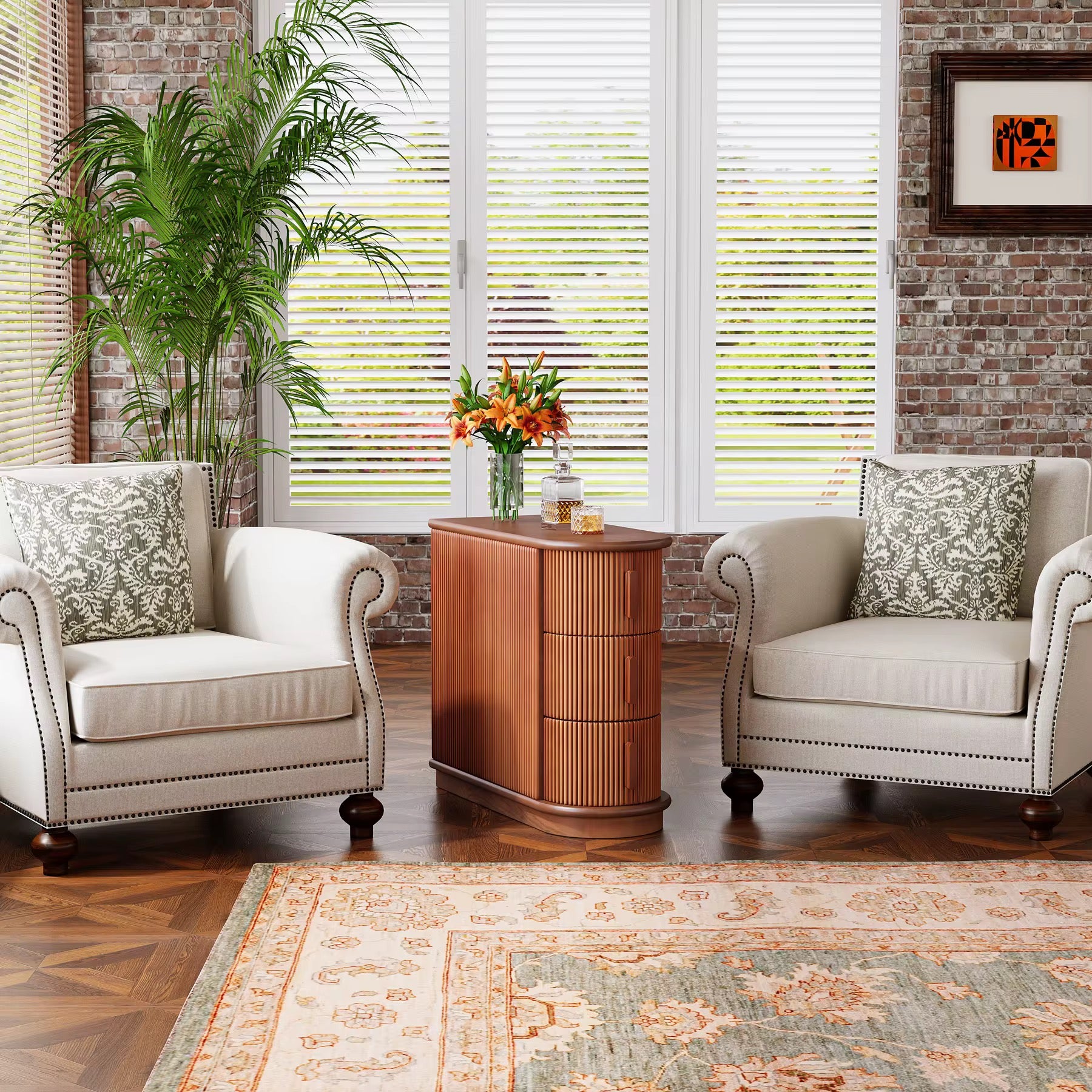 This side table combines refined aesthetics with smart utility. The three-drawer design allows you to keep surfaces clean and clutter-free, while the wood finish brings an organic, inviting feel to your space. Whether you're adding a finishing touch beside your sofa or enhancing your bedroom's storage, this piece delivers on both form and function.
