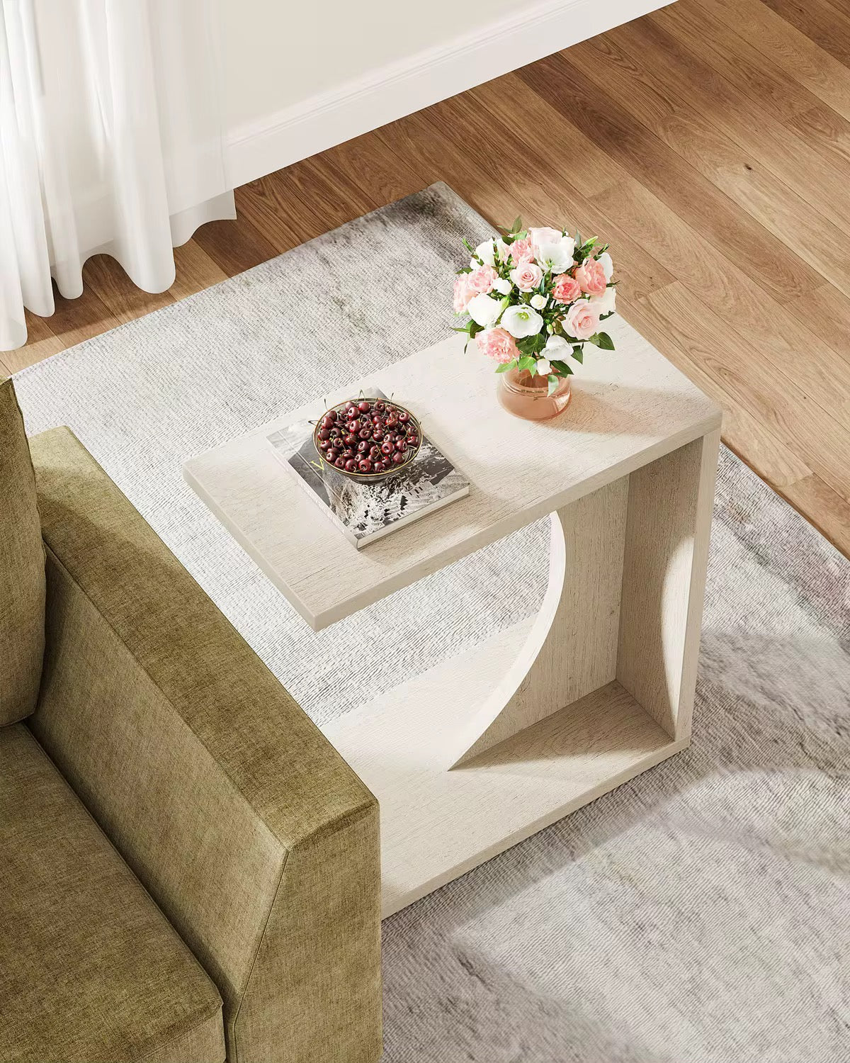This table is the ultimate blend of style and utility. The C-shaped design not only looks elegant but also gives you that extra reach while lounging—no need to stretch or get up for your laptop, book, or cup of coffee. It's particularly suited for tighter spaces, provided you still get full surface functionality. Thanks to the minimal profile, it keeps your room looking open and airy.